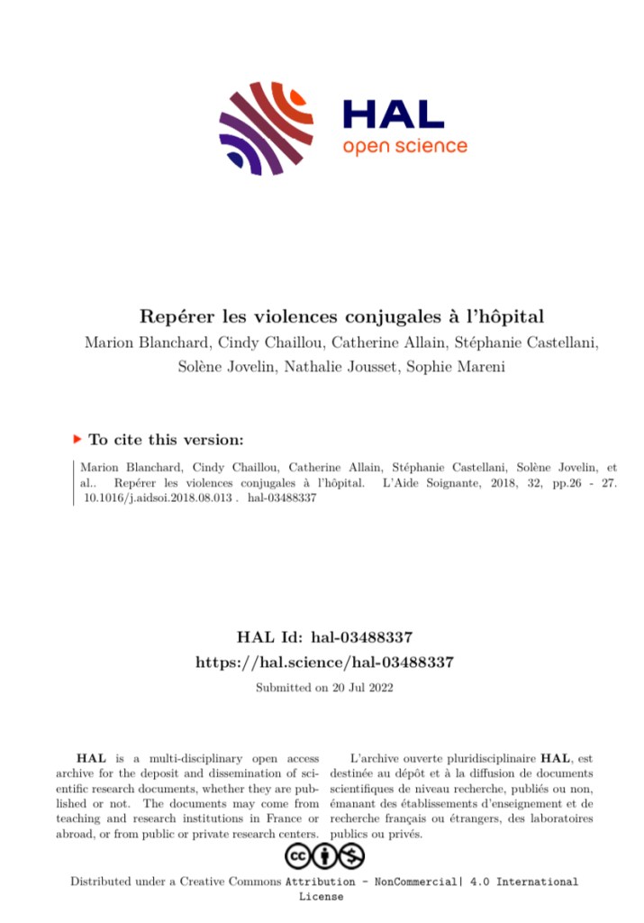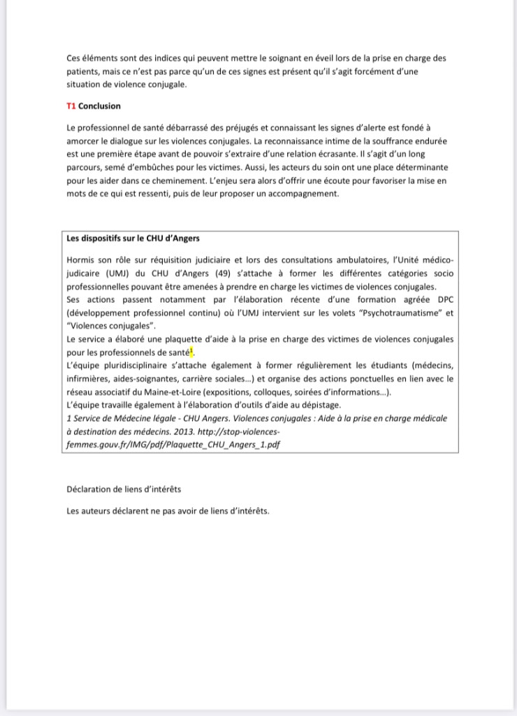 - Article (2018): Comment repérer les violences conjugales à l’hôpital.